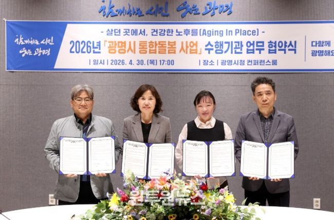 시는 30일 시청 컨퍼런스룸에서 ‘2026년 광명시 통합돌봄 사업’ 수행기관 3곳과 업무협약을 체결했다.