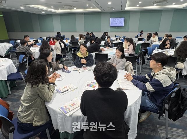 이날 행사에는 천곡초등학교 선우영화 수석교사가 질문과 토론이 있는 수업을 주제로 특강을 진행했다. 이어 참가 교사들은 직접 수업 지도안을 작성하고 학생 참여형 수업 적용 방안을 함께 모색하는 실습 시간에 참여했다.