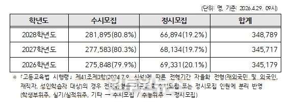 (원투원뉴스) 한국대학교육협의회(회장 이기정 한양대학교 총장)는 '고등교육법' 제34조의5제4항에 근거하여 194개의 전국 회원대학이 제출한 '2028학년도 대학입학전형시행계획'을 취합하여 공표했다.