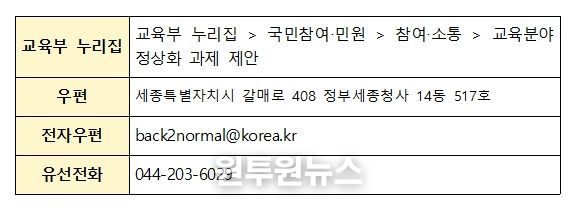 아울러, 교육부는 ‘교육 분야 정상화 과제 제안’ 창구를 지속 운영하여, 정책수요자가 생각하는 불합리한 사례들에 대해 지속적으로 관리하고, 최소 반기별로 정상화 과제를 지속 선정‧관리해 나갈 계획이다.