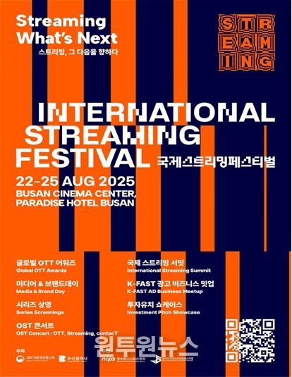 (원투원뉴스) 부산시는 과학기술정보통신부와 함께 '2025 국제 스트리밍 페스티벌(International Streaming Festival)'을 오는 8월 22일부터 25일까지 4일간 영화의전당과 부산 파라다이스호텔에서 개최한다고 밝혔다.