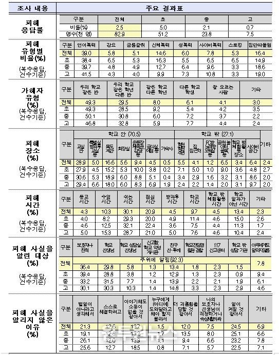 한편, 교육부는 실태조사가 이루어진 지난 4월 관계부처와 합동으로 '제5차 학교폭력예방 및 대책 기본계획'(’25~’29.)을 수립하고, 이를 현장에 적용하기 위한 후속 조치를 추진하고 있다.