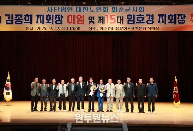 (원투원뉴스) (사)대한노인회 화순군지회(지회장 임호경)는 17일 오전 10시 화순 하니움문화스포츠센터에서 초청 내외빈과 회원 500여 명이 참석한 가운데, 제14대 김종희 지회장 이임식과 제15대 임호경 지회장 취임식을 개최했다.