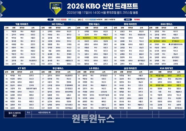 고교 92 / 대학 16 (얼리드래프트 1) / 기타 2