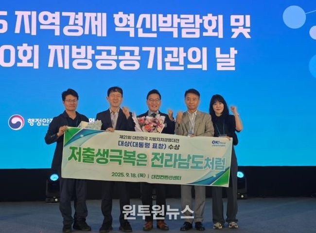 (원투원뉴스) 전라남도는 18일 제21회 대한민국 지방자치경영대전에서 저출생 극복 성과를 인정받아 대통령 표창을 수상했다고 밝혔다.