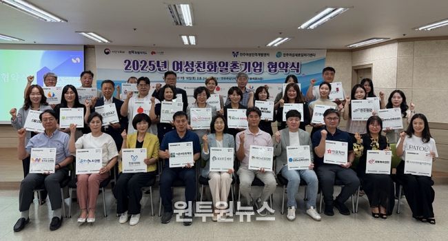 시는 18일 전주여성새로일하기센터(관장 양희옥) 민들레홀에서 여성 인력을 적극 채용하고 좋은 일터 만들기에 앞장서 온 △미르피아여성병원 △(유)비타민G&P △㈜한실어패럴 등 31개 기업과 ‘2025년 전주시 여성친화 일촌기업 협약식’을 가졌다.
