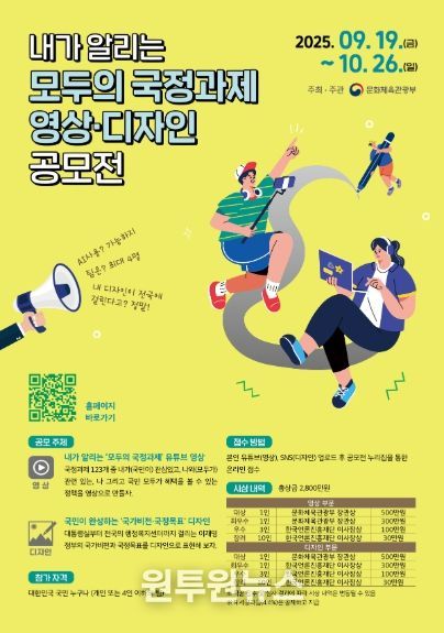 (원투원뉴스) 문화체육관광부는 이재명 정부 국정과제 확정(9. 16.)에 맞춰 새 정부의 다양한 정책에 대한 국민의 관심을 높이고, 국가비전과 국정목표 디자인을 국민과 함께 완성하기 위해 9월 19일부터 10월 26일까지 ‘내가 알리는 모두의 국정과제, 영상‧디자인 공모전’을 개최한다.