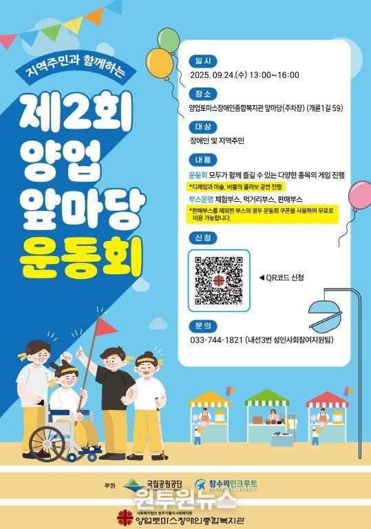 (원투원뉴스) 양업토마스장애인종합복지관은 오는 24일 오후 1시부터 4시까지 복지관 앞마당에서 지역 주민과 함께하는 제2회 양업 앞마당 운동회를 개최한다.