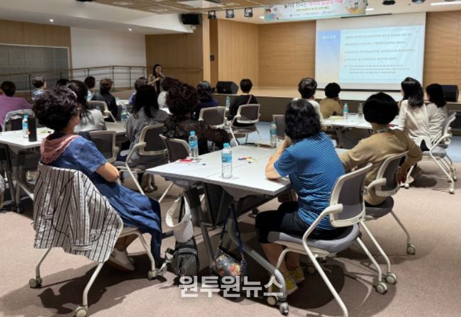 (원투원뉴스) 세종시사회서비스원이 운영하는 세종시아이돌봄광역지원센터는 23일, 새롬종합복지센터 강의실에서 아이돌보미를 대상으로 ‘놀이로 만나는 아이의 발달과 마음’ 교육을 실시했다.
