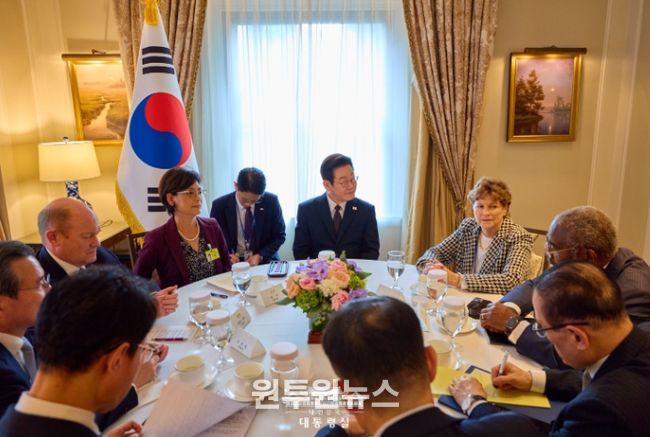 (원투원뉴스) 유엔총회 참석 차 미국을 방문한 이재명 대통령이 22일(현지시간) 오후 뉴욕에서 미 상원 외교위 및 하원 외무위 소속 의원 4명을 접견하고, 한미동맹 강화, 한미 경제협력 확대 및 한반도 문제 등에 대해 의견을 교환했다.