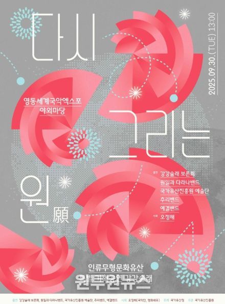 (원투원뉴스) 국가유산청은 국가유산진흥원과 함께 9월 30일 오후 1시 충북 영동 세계국악엑스포 야외마당과 10월 8일~9일 오후 8시 15분 서울 경복궁 집옥재, 향원정 무대에서 유네스코 인류무형유산 강강술래 특별 기획공연을 개최한다.