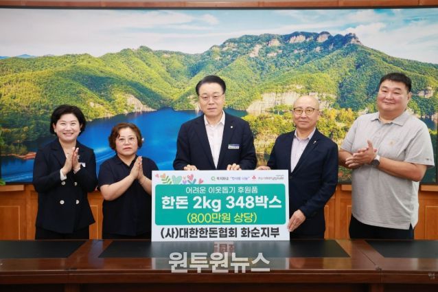 (원투원뉴스) 화순군은 지난 24일 추석 명절을 맞이하여 대한한돈협회 화순지부(지부장 박용완)에서 800만 원 상당의 한돈(2kg) 348박스를 기부했다고 밝혔다.