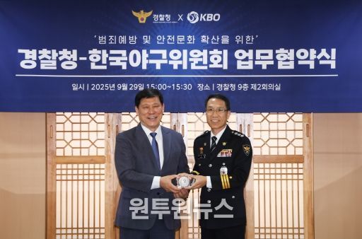 (원투원뉴스) KBO와 경찰청(청장 직무대행 유재성)은 9월 29일(월) 경찰청에서 업무 협약을 체결했다.