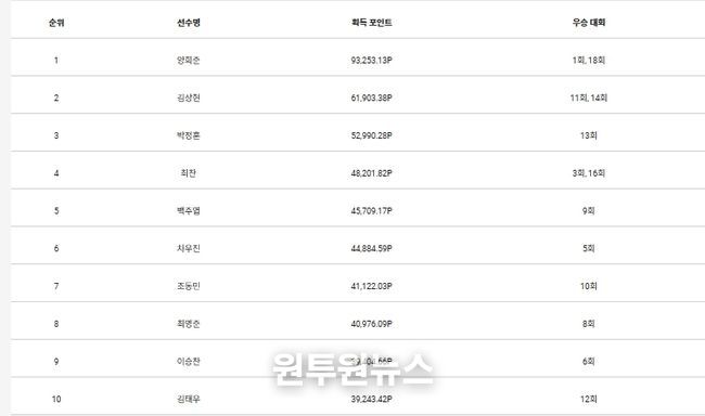 통합 포인트 1위는 결정됐다. 총 93,253,13포인트를 쌓은 양희준(25)이다.