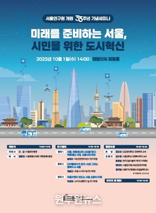 (원투원뉴스) 서울연구원은 10월 1일 오후 2시, 페럼타워 페럼홀에서 '미래를 준비하는 서울, 시민을 위한 도시혁신'을 주제로 개원 33주년 기념세미나를 개최한다.