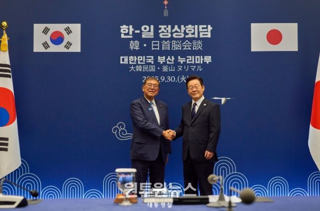 (원투원뉴스) 이재명 대통령은 9월 30일 '이시바 시게루(石破 茂)' 일본 총리와 부산에서 한일 정상회담을 가졌다. 양 정상은 한일 간 실질 협력 강화 방안과 지역 및 글로벌 차원에서의 협력 필요성에 대해 폭넓고 심도 깊은 의견을 교환했다.