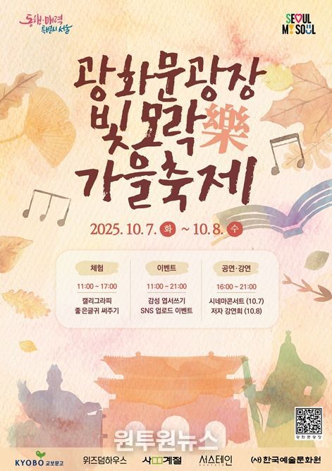 서울시는 10월 7일~8일 이틀간 ‘2025 광화문광장 빛모락 가을축제’를 개최한다고 밝혔다.