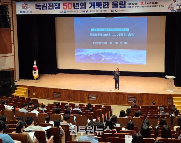 (원투원뉴스) 광주시교육청은 1일 학생교육문화회관 공연장에서 광복 80주년을 맞아 인문학 강연 ‘독립운동 50년의 거룩한 울림’을 진행했다.