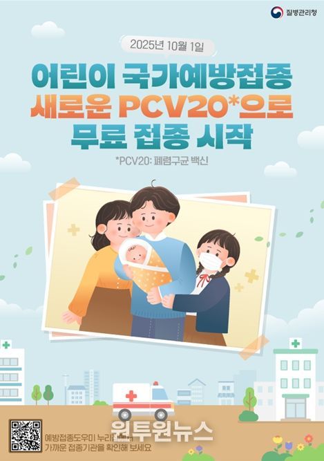 (원투원뉴스) 질병관리청은 10월 1일부터 폐렴구균 국가예방접종에 신규 백신인 20가 단백결합백신(PCV20)을 도입해 접종을 시작한다.