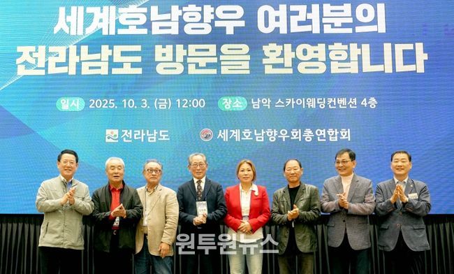 세계호남향우회 총연합회(회장 이기자)는 3일 ‘2025 세계 호남인의 날’을 기념해 전 세계 회원 250여 명과 함께 전남을 방문, 고향사랑기부금 3천만 원을 전달했다.