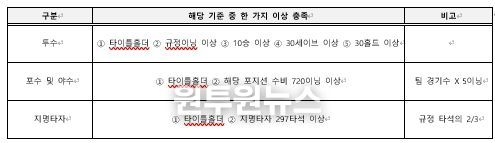 이와 같은 기준에 따라 투수 부문 33명, 포수 부문 7명, 1루수 부문 6명, 2루수 부문 5명, 3루수 부문 6명, 유격수 부문 8명, 외야수 부문 16명, 지명타자 부문 2명 등 총 83명이 후보로 선정됐다.