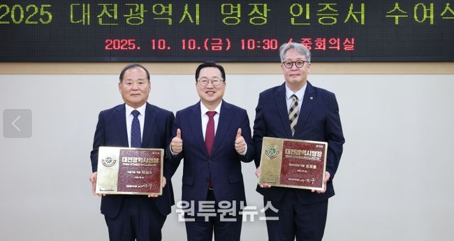 (원투원뉴스) 대전시는 10일 시청 중회의실에서 2025년‘대전광역시 명장’으로 선정된 2명에게 인증서와 인증패를 수여했다.