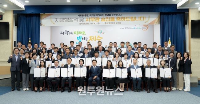 (원투원뉴스) 제주특별자치도는 10일 오전 도청 탐라홀에서 사무관 및 연구·지도관 승진자 50명에게 임용장을 수여했다.