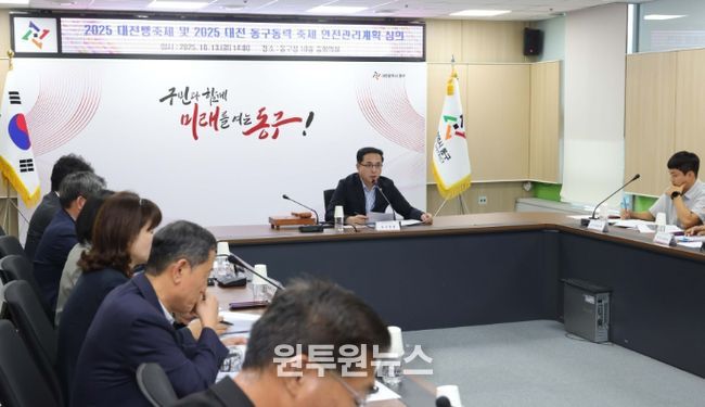 (원투원뉴스) 대전 동구는 13일 구청 10층 중회의실에서 ‘2025 대전 동구동락 축제’와 ‘2025 대전 빵축제’의 안전관리계획을 심의하기 위해 ‘동구 안전관리위원회 회의’를 개최했다고 밝혔다.