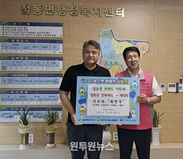 (원투원뉴스) 여주시 점동면은 지난 10월 13일, 점동면 지역사회보장협의체의 대표 사업인 '점동은 진국이다'를 주제로 한 디자인 및 캐릭터 재능기부 기탁식을 개최했다.