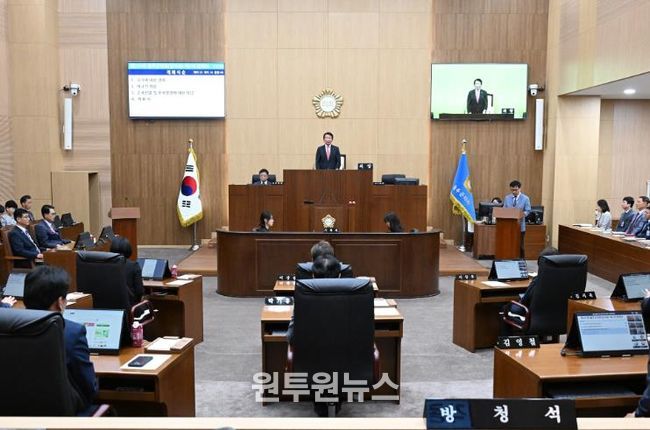 최길영 의장은 개회사에서 “비교적 짧은 회기지만 군정의 주요 현안을 깊이 있게 논의하고, 지역 발전의 방향을 함께 모색하는 소중한 시간이 되길 바란다”며 “군정 발전에 실질적인 도움이 될 수 있도록 안건 심사에 최선을 다해 달라”고 당부했다.