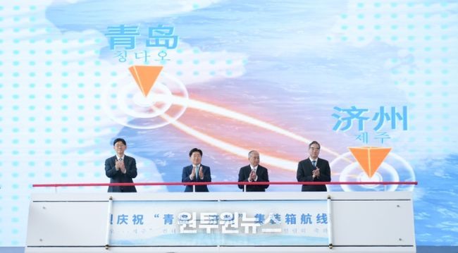 (원투원뉴스) 대한민국 제주와 중국 칭다오를 잇는 첫 국제 컨테이너선 정기항로가 공식 개통됐다.