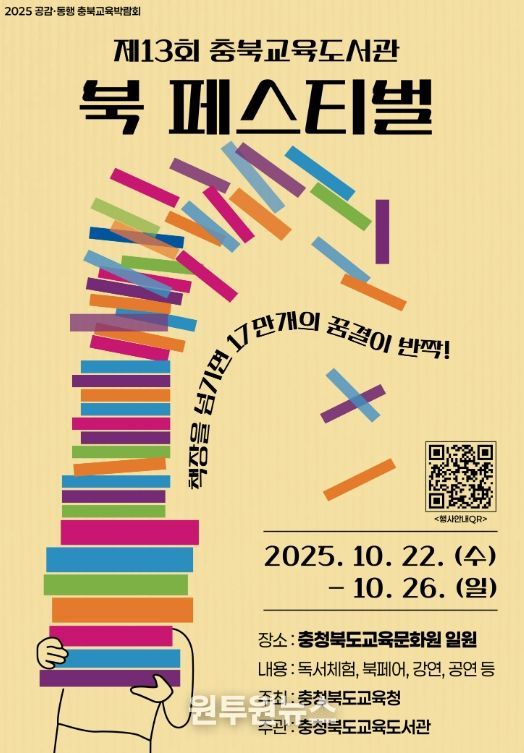 (원투원뉴스) 충청북도교육청 직속기관 교육도서관은 오는 22일부터 26일까지 5일간 제13회 충북교육도서관 북 페스티벌을 개최한다고 밝혔다.