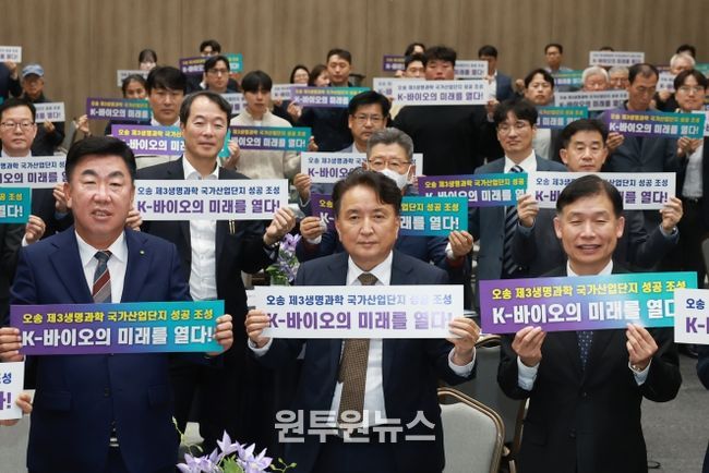 (원투원뉴스) 충북도는 오송 제3생명과학 국가산업단지가 승인(’25. 8. 28.)됨에 따라, 성공적인 사업 추진을 위한 공감대 형성을 목적으로 유관기관, 기업체 및 지역 주민 100여 명이 참석한 가운데 20일 청주오스코에서 ‘오송 제3생명과학 국가산업단지’ 조성 전략 도민보고회를 개최했다고 밝혔다.