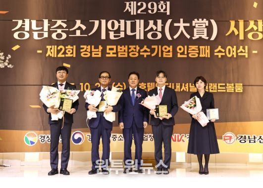 (원투원뉴스) 경상남도는 22일 오후 호텔 인터내셔널 창원에서 ‘제29회 경남중소기업대상 시상식’ 및 ‘제2회 경남 모범장수기업 인증패 수여식’을 개최했다.