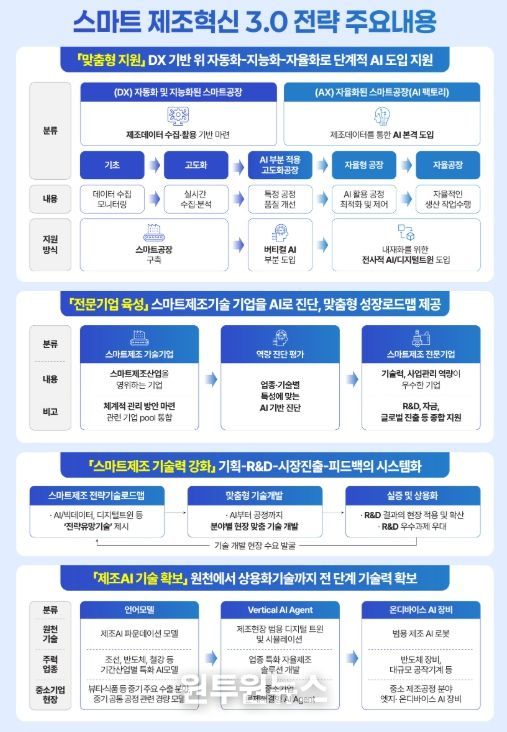 (원투원뉴스) 중소벤처기업부는 24일, 제5차 국정현안관계장관회의에서 'AI 기반 스마트제조혁신 3.0 전략'을 발표했다.