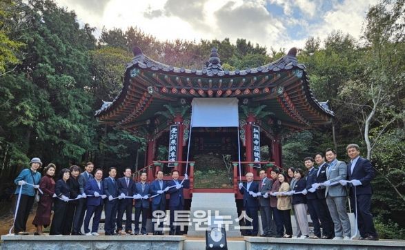 (원투원뉴스) 연제구는 10월 23일 배산 전통정자 건립을 기념하는 배산 전통정자 ‘도화정’ 제막식을 개최했다.