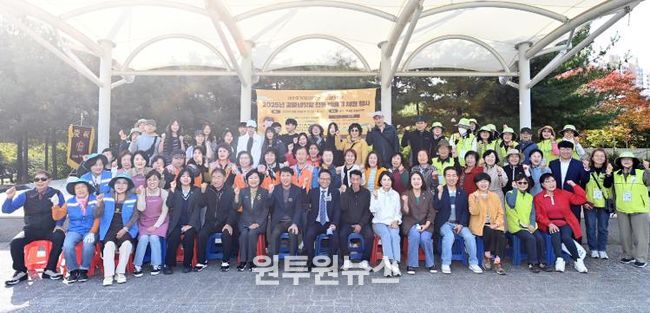 (원투원뉴스) 부평구는 지난 25일 갈산근린공원 내 갈월샘텃밭에서 구민들과 함께 ‘갈월샘텃밭 전통 벼 베기 체험행사’를 개최했다.