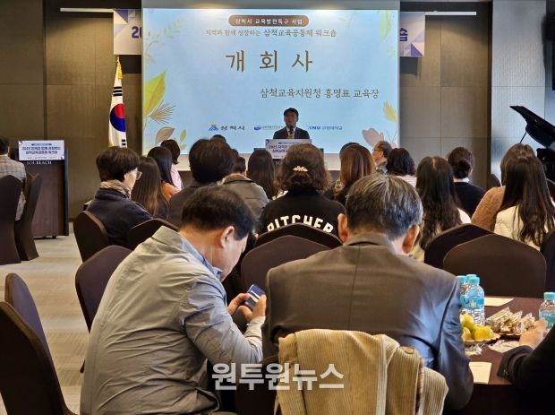 홍명표 교육장은 개회사를 통해 “이번 워크숍은 삼척교육의 중심에 있는 교직원과 지역사회가 서로의 경험과 비전을 공유하며 함께 성장하기 위한 자리”라고 강조하며 “학교·가정·지역이 서로를 신뢰하고 연대할 때 아이들의 배움과 성장이 더욱 단단해질 것”이라고 밝혔다. 또한 “교육발전특구를 중심으로 지역과 함께하는 교육혁신의 기반을 지속적으로 강화해 나가겠다”고 덧붙였다.