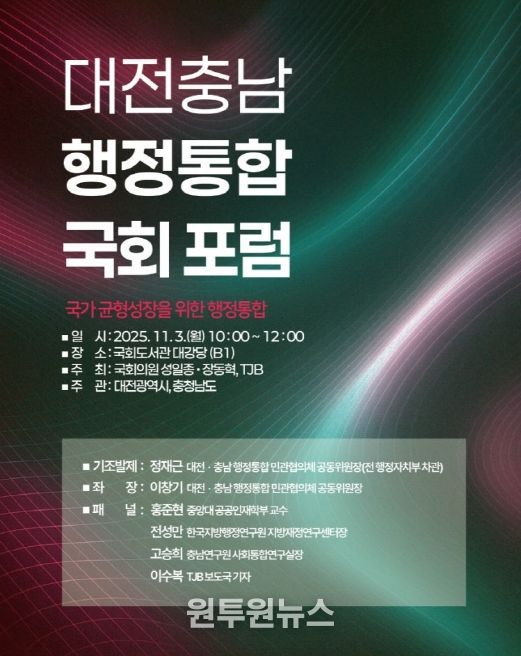 (원투원뉴스) ‘대전충남특별시 설치 및 경제과학수도 조성을 위한 특별법’이 국회에 발의된 가운데, 행정통합에 대한 국민 공감대 확산을 위한 공론의 장이 펼쳐졌다.