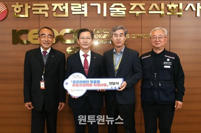 이날 한국전력기술(주)에서 진행된 전달식에는 최순고 김천시 부시장, 한전기술 김태균 사장과 김성도 노조위원장, 김길영 김천시지체장애인협회장이 참석했다.