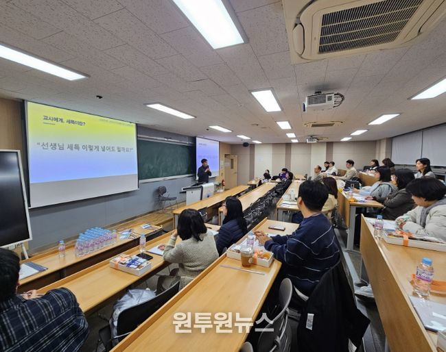 ‘교과세특을 부탁해!’를 주제로 한 이번 연수에는 국어, 영어, 수학, 사회, 과학, 예술·체육 교과의 전문 교사 6명이 강사로 참여해 ▲과정중심 평가 사례 공유 ▲교과세특 우수 작성 사례 발표 ▲수업·평가·기록 일체화 전략 안내 ▲실습 및 질의응답 등 실질적인 연수가 이뤄졌다.