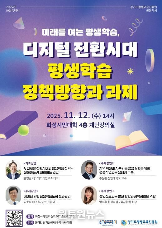 (원투원뉴스) 화성특례시는 오는 11월 12일, 2025년 평생학습주간을 맞아 화성시민대학에서 ‘화성시 평생학습포럼’을 개최한다고 밝혔다.