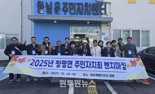 (원투원뉴스) 가평군 청평면주민자치회는 최근 2박 3일 일정으로 제주특별자치도 일원에서 ‘벤치마킹 및 역량강화 워크숍’을 실시했다. 이번 행사는 주민 주도형 자치 역량을 높이고 지역관광 자원을 활용한 발전 모델을 모색하기 위해 마련됐다.