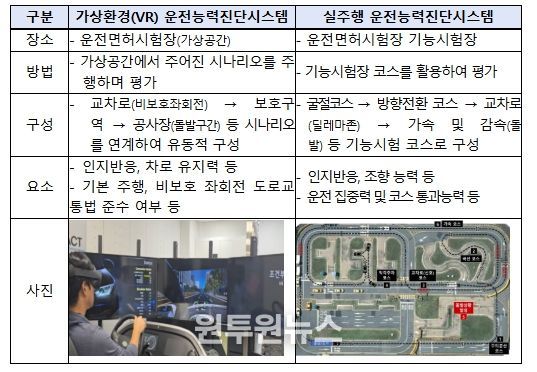 (원투원뉴스) 경찰청과 한국도로교통공단(이사장 김희중)은 11월 5일 오후 2시 서울 강서운전면허시험장에서 보건복지부, 국립중앙의료원 중앙치매센터, 손해보험협회 등이 참여한 가운데 실주행 및 가상환경 기반 운전능력진단시스템 시연회를 개최했다.