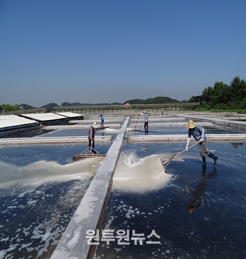 천일염은 소래습지생태공원 내 약 3만 5천㎡ 규모의 염전에서 바닷물을 끌어들여 자연의 바람과 햇빛으로 증발시키는 전통 방식으로 생산됐다.