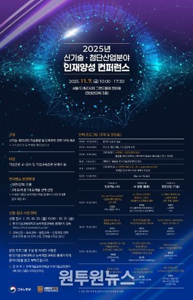 (원투원뉴스) 한국기술교육대학교(KOREATECH·총장 유길상)는 7일(금) 서울드래곤시티 한라홀에서 직업훈련교·강사 및 직업교육훈련 관계자 350여 명이 참석한 가운데 ‘2025년 신기술·첨단산업분야 인재양성 콘퍼런스’를 성황리에 개최했다.