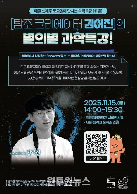 국립중앙과학관 권석민 관장은 “이번 강연은 과학을 교과서 너머의 세계로 확장하는 흥미로운 기회가 될 것”이라며 “학생들에게는 주변 생태계를 감각적으로 경험하는 통로, 학부모에게는 일상에서 자연을 함께 관찰하며 소통할 수 있는 기회가 될 것”이라고 말했다.