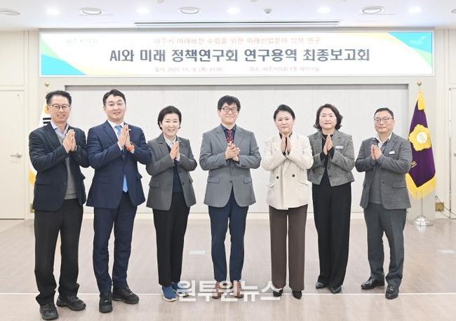 (원투원뉴스) 파주시의회 의원연구단체인 ‘AI와 미래 정책연구회’는 지난 6일 시의회 세미나실에서 '파주시 미래비전 수립을 위한 미래산업분야 정책연구' 최종보고회를 개최했다.