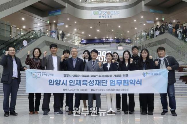 (원투원뉴스) 안양시 인재육성재단은 10일 한국잡월드 숙련기술체험관 대회의실에서 직업진로체험 대표기관인 한국잡월드와 업무협약을 체결했다고 11일 밝혔다. 이번 협약은 안양시 어린이·청소년의 다양한 진로·직업체험 및 교육지원을 위해 양 기관이 상호협력을 강화하고자 추진됐다.