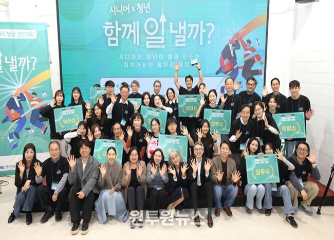 대회는 시니어 친화 직무 중심의 ▲시니어 직접 발굴형 일자리와 세대 상호보완 협업형의 ▲청년 상생형 일자리 등 두 분야로 진행됐다. 시니어가 사전에 제안한 아이디어를 바탕으로 청년 서포터즈가 매칭되어 팀을 이뤘으며, 최대 4명(시니어 2명, 청년 2명)으로 구성된 총 10개 팀이 최종 결선에 올랐다.